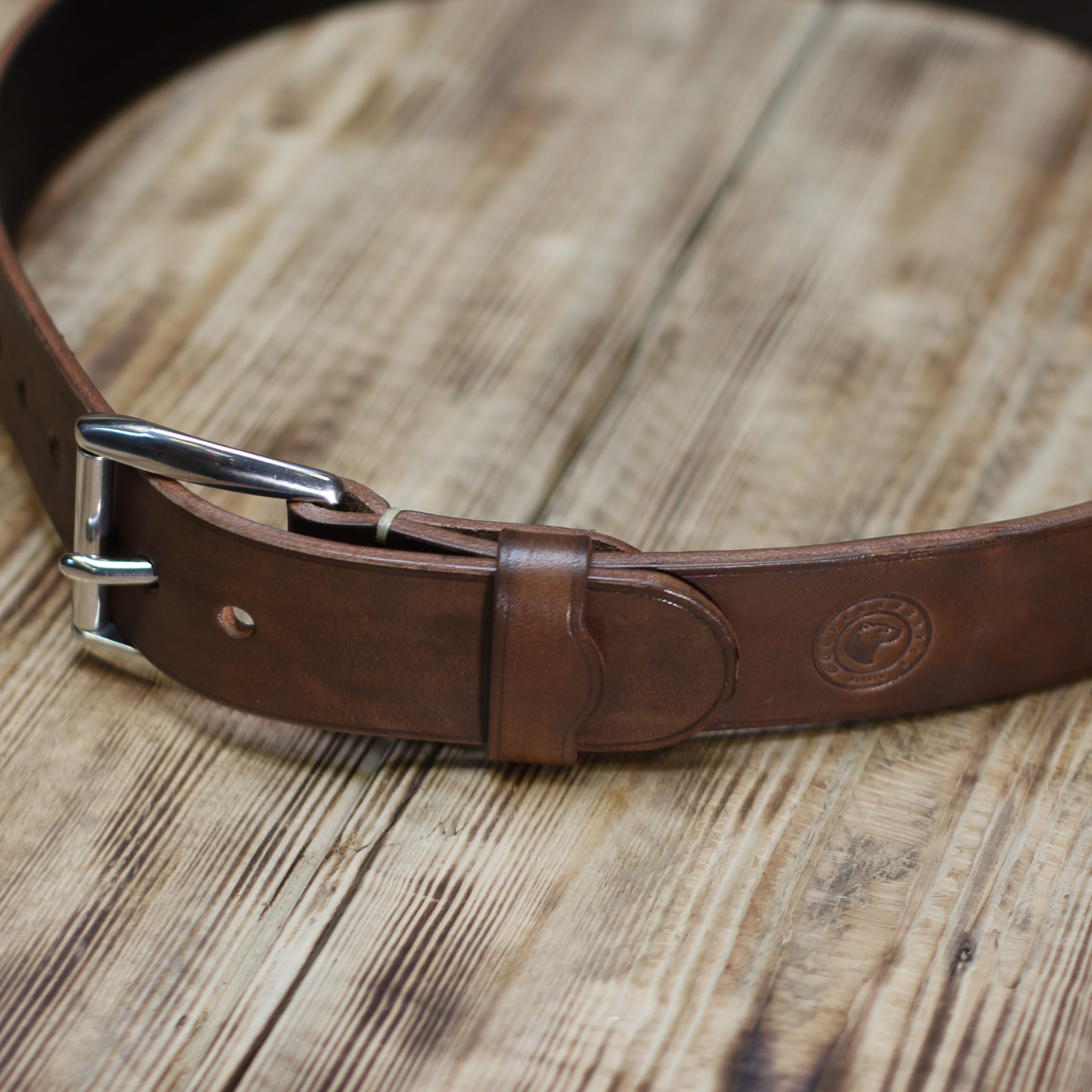 Für die Herstellung dieses Gürtels verwenden wir hochwertiges pflanzlich gegerbtes Leder von „Hermann Oak“ USA