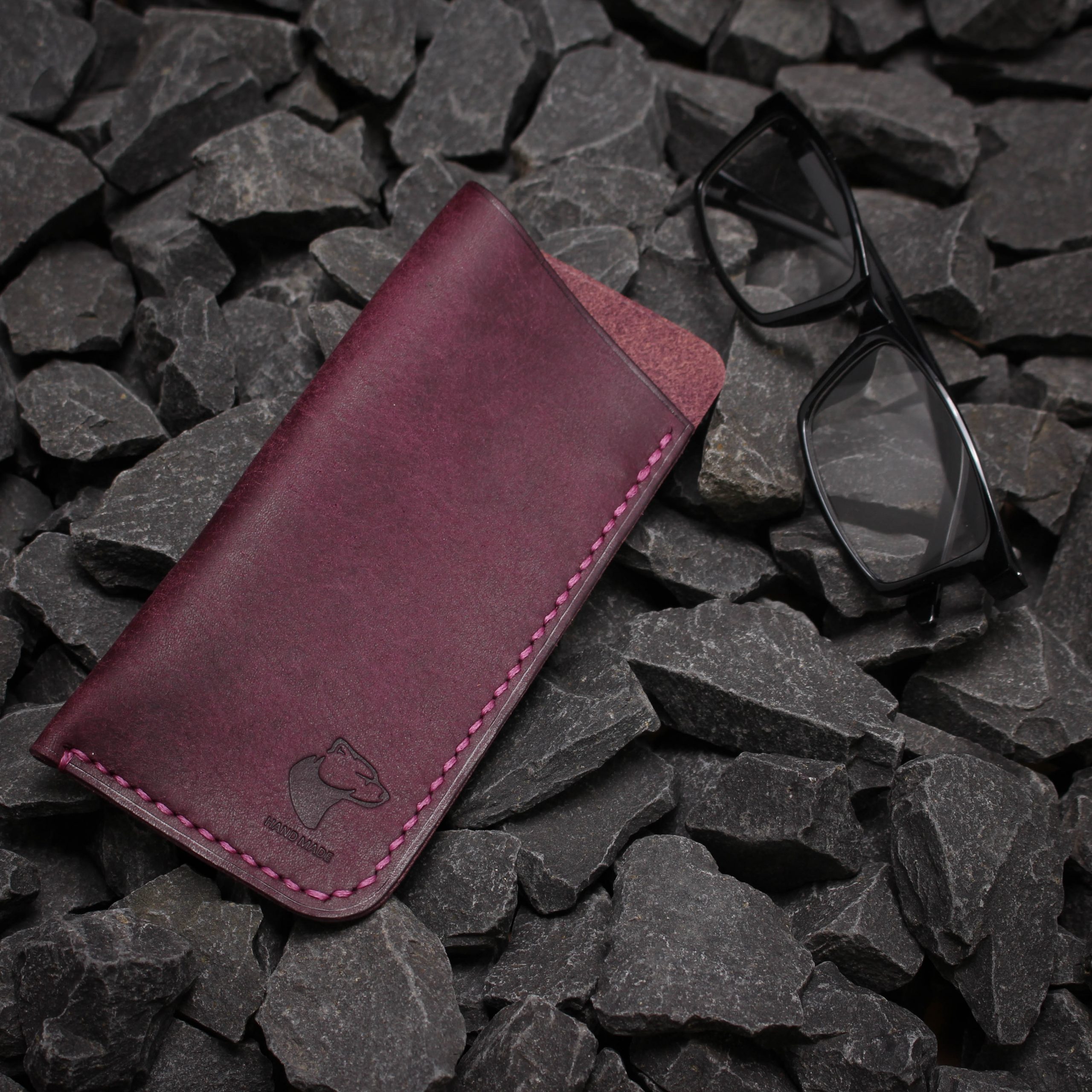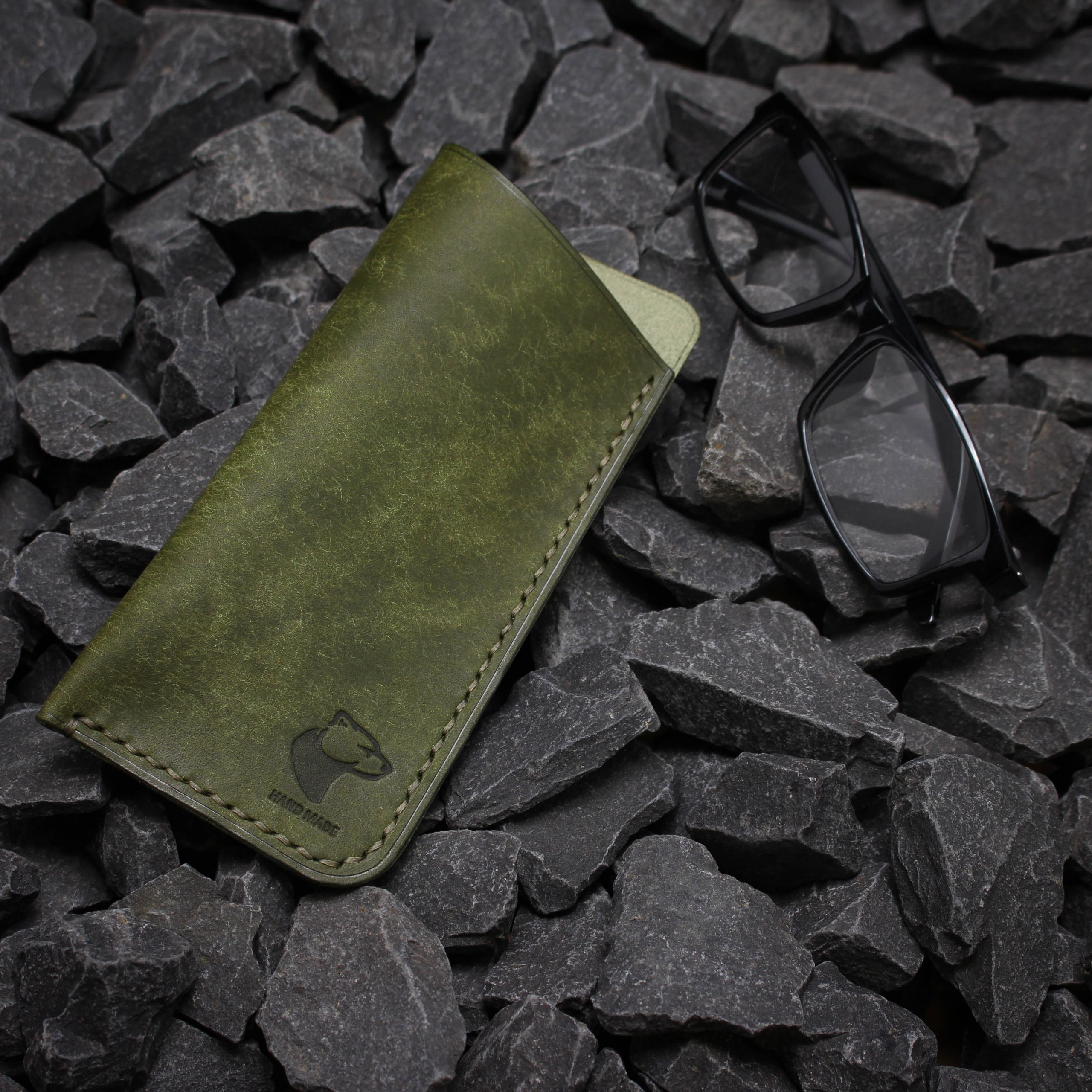 Für die Herstellung dieses Brillenetuis verwenden wir hochwertiges italienisches pflanzlich gegerbtes Leder von „Badalassi Carlo “ / PUEBLO COLLECTION