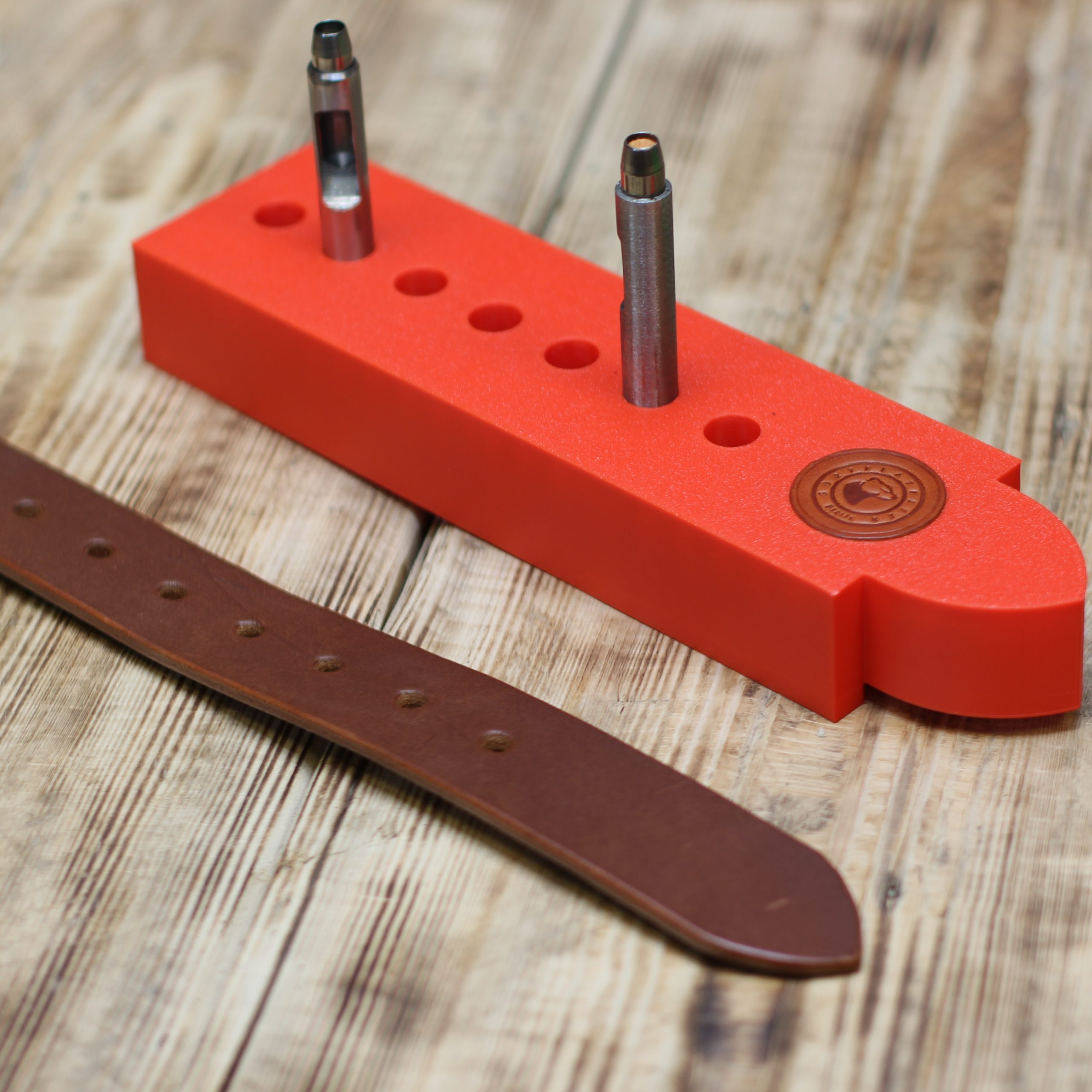 Diese Schablone ermöglicht es, 7 Löcher auf einem Gürtelriemen schnell und präzise zu markieren und zu stanzen