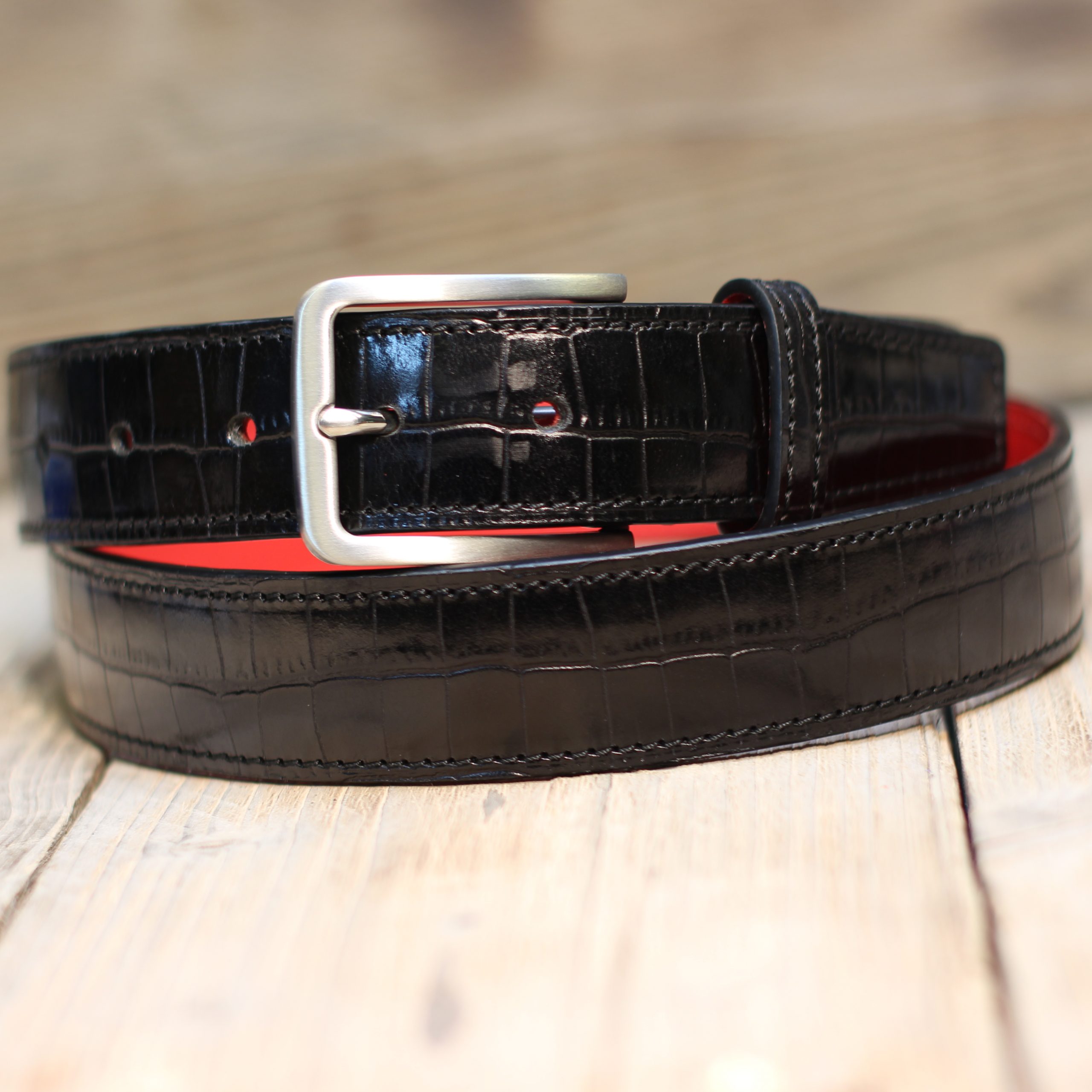 ►Die Oberfläche besteht aus hochwertigem Rindsleder mit einer Prägung, die einer Krokodilhaut ähnelt