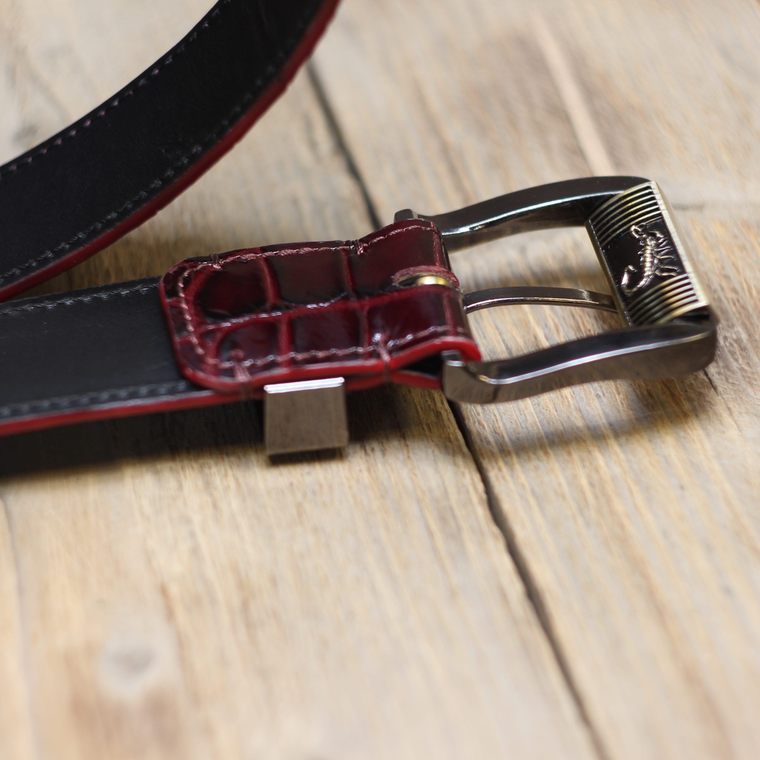 ►Die Oberfläche besteht aus hochwertigem Rindsleder mit einer Prägung, die einer Krokodilhaut ähnelt