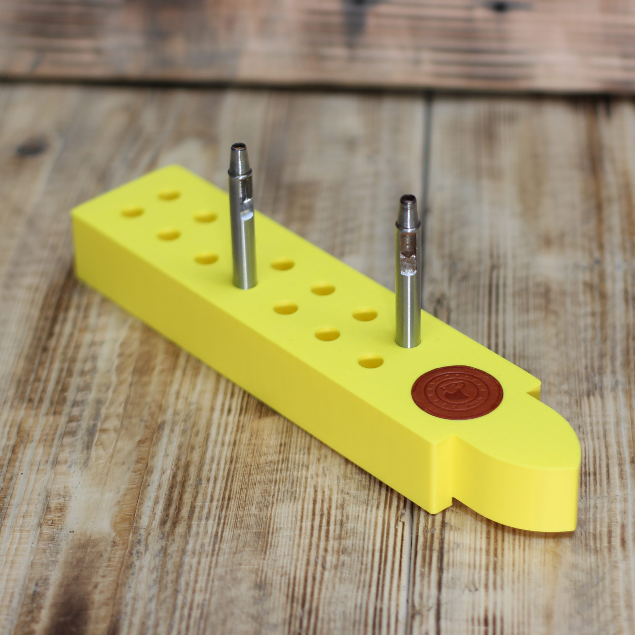 Das Formenset enthält außerdem zwei Locheisen mit Ø 2,5 mm (+1 Stück  Ø 1,5 mm), ein ovales Locheisen (25 x 5 mm) sowie zwei Locheisen mit Ø 5,5 mm