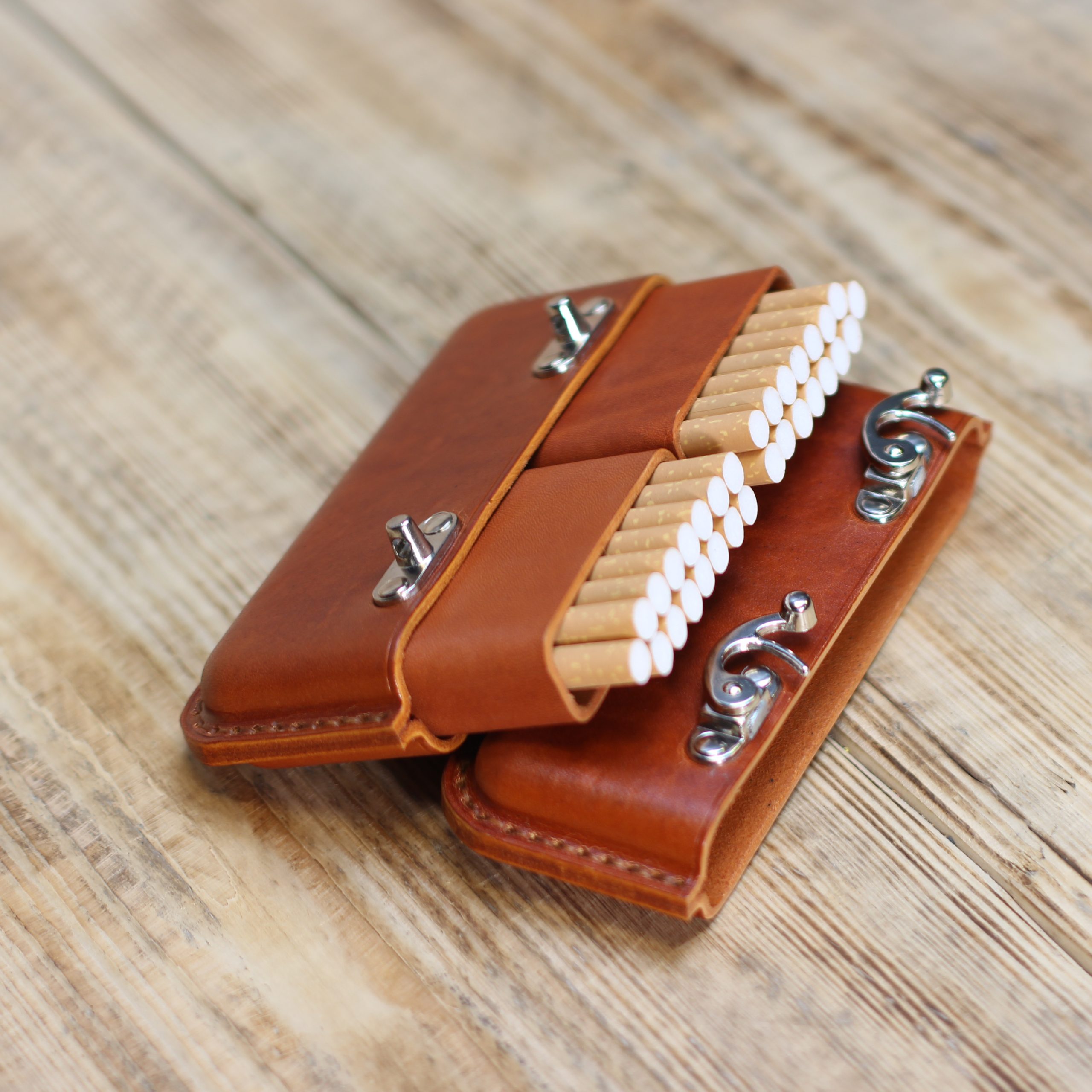 Für die Herstellung Zigarettentasche verwenden wir hochwertiges pflanzlich gegerbtes Premium Büffelleder sowie die Technik der Nassformung.