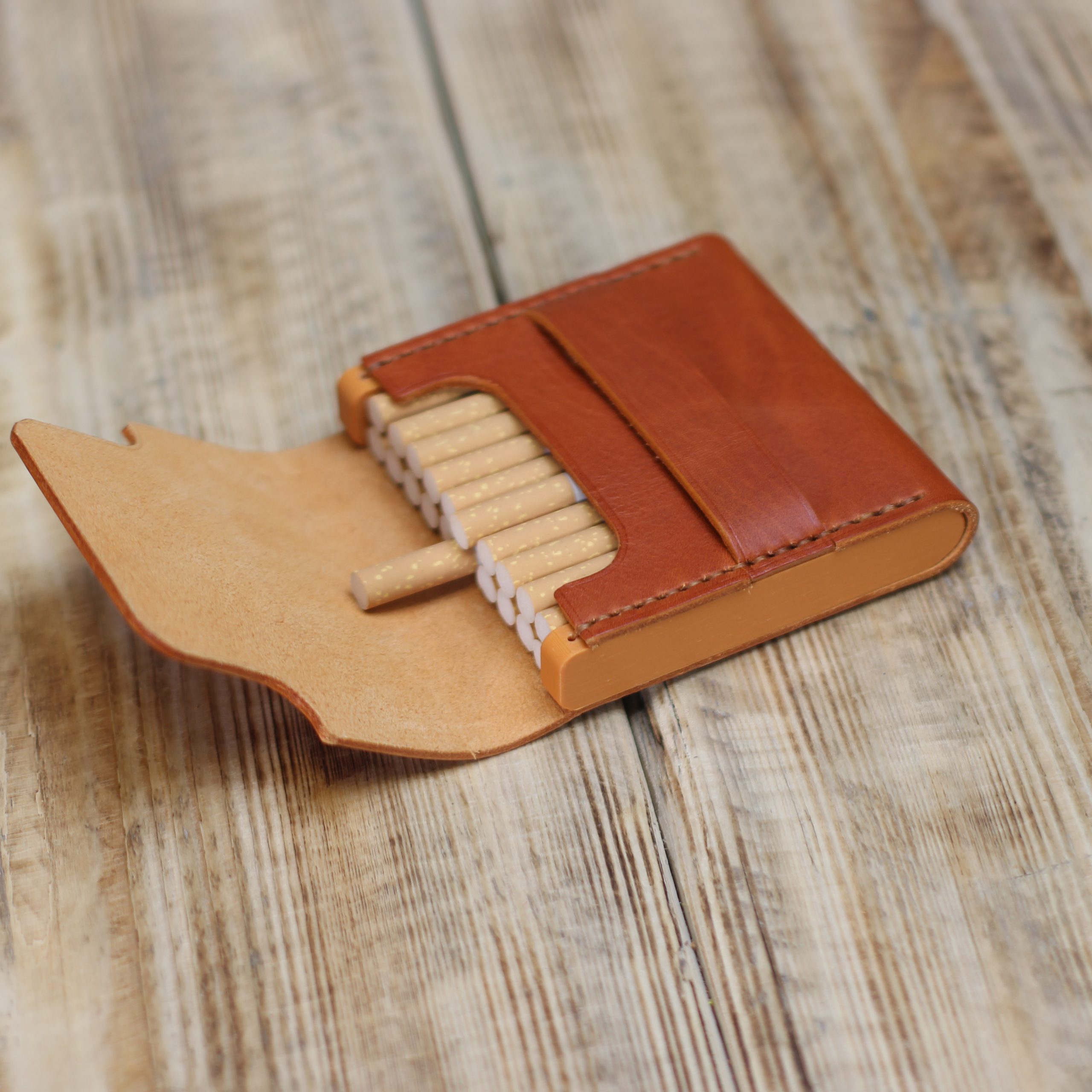 Für die Herstellung der Zigarettentasche verwenden wir hochwertiges pflanzlich gegerbtes Premium Büffelleder sowie 3D-Druck-Technologie